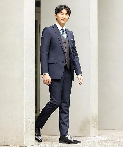 立体的なシルエットで適度なスリム感がポイントのブランドです。ストレッチ性やシワになりにくい素材を使用する等、スーツ初心者にも扱いやすくなっています。2パンツや洗える機能付きなど幅広いニーズにお応えします。入学式はもちろん入社式等にもおススメです。