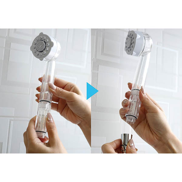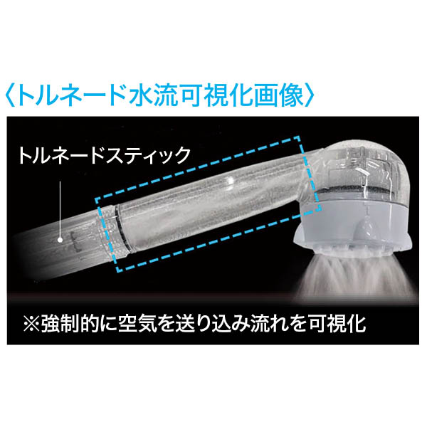 頭皮から足先まで全身を「褒められ肌」に導くシャワーを体感。水道水の塩素を低減。肌に優しい水を作るトルネードスティック。